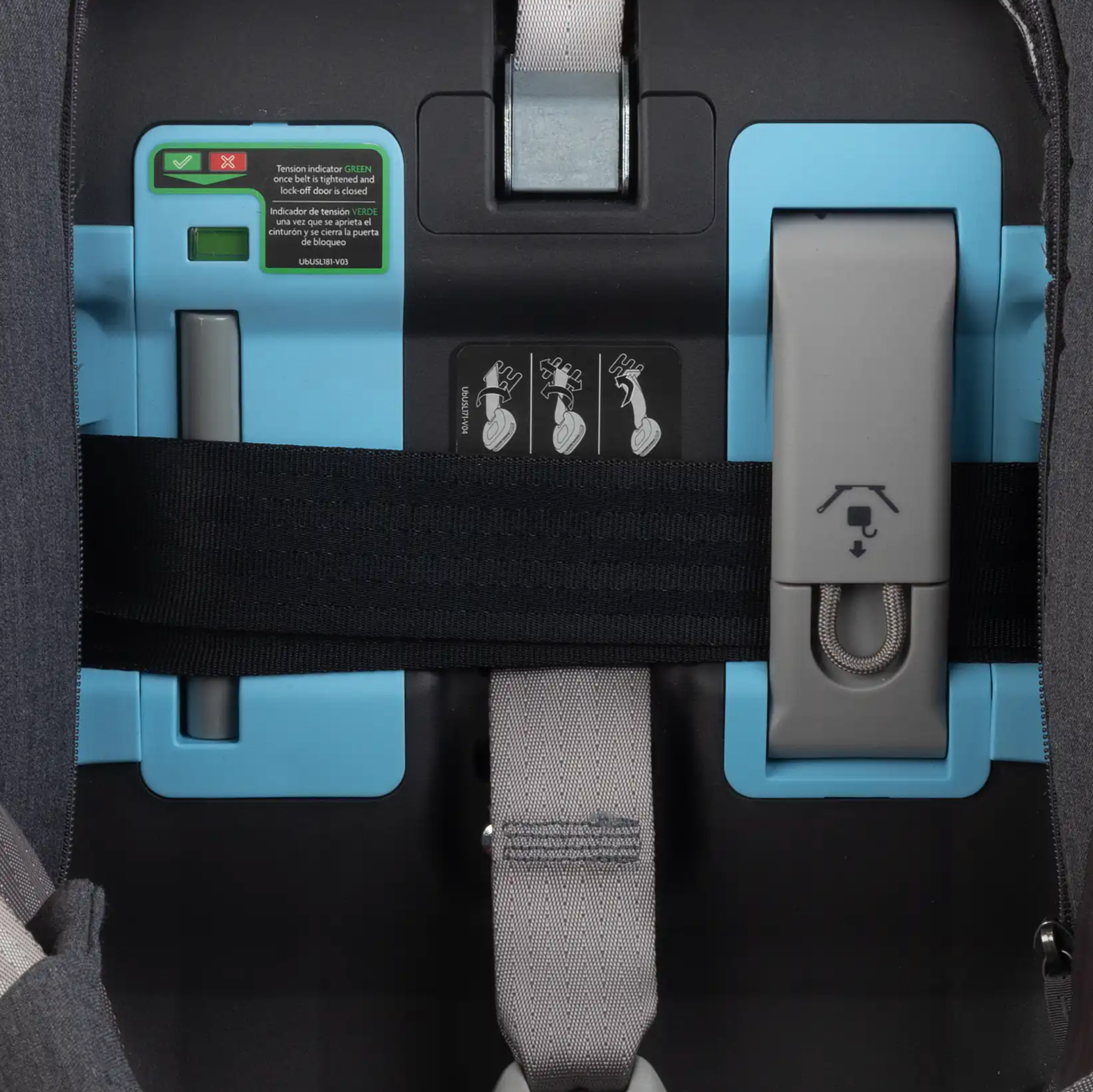 • Installs in seconds with intuitive, 3-step, spring-loaded lock-off doors that secure the vehicle belt without use of the Automatic Locking Retracting System (ALR)