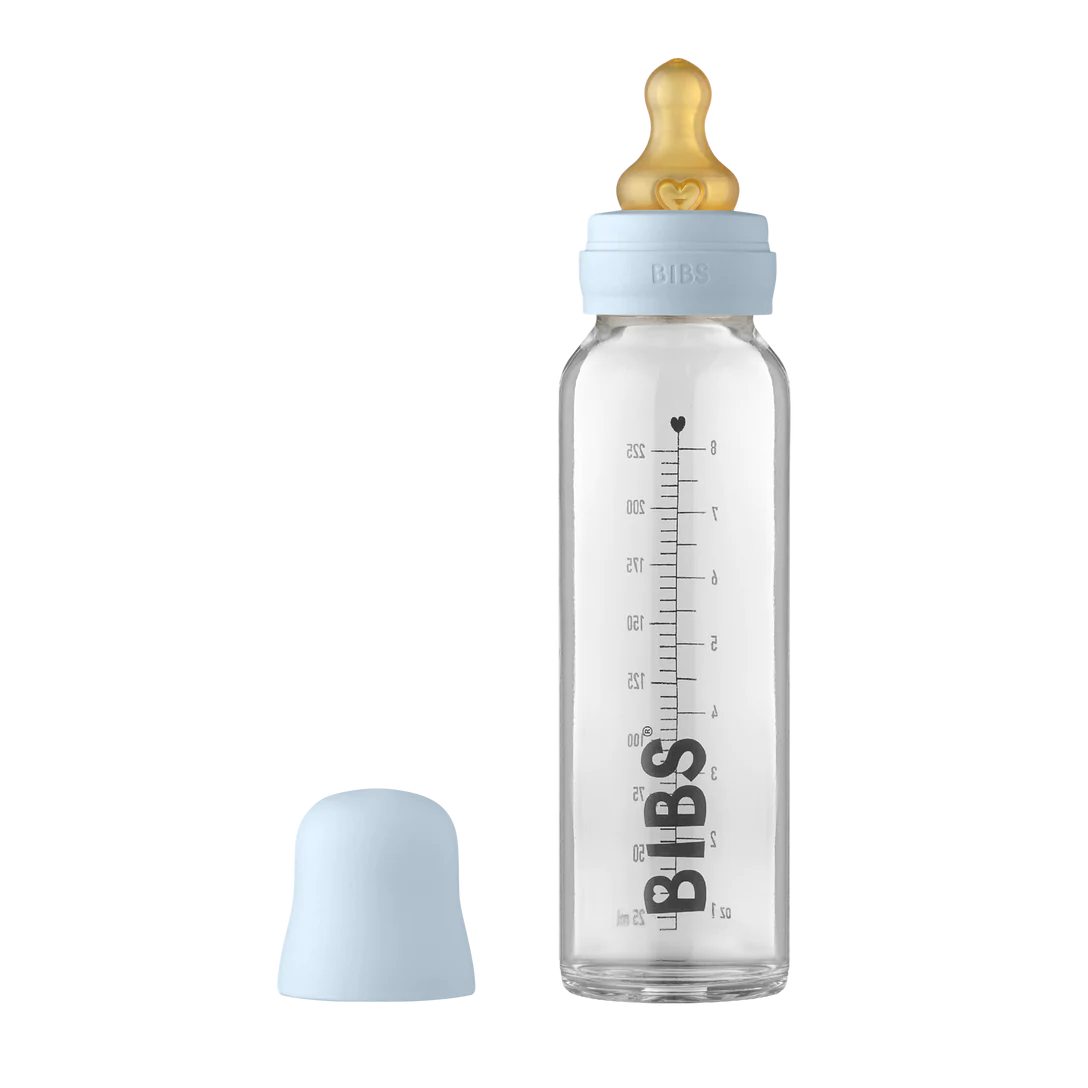 BIBS Baby Glass Bottle - Complete Set 8 Ounce - Baby Blue