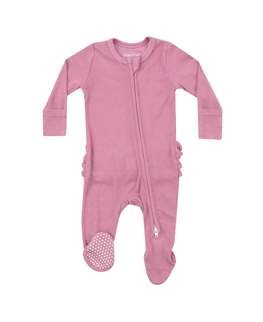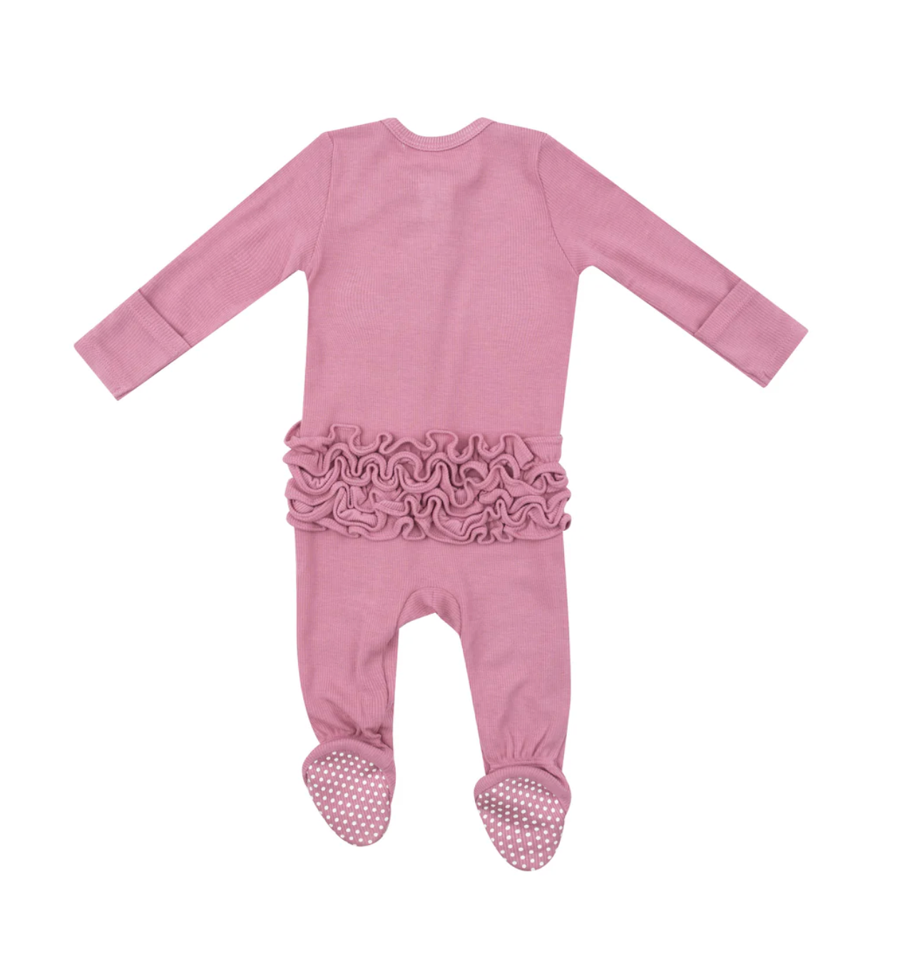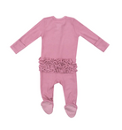Ribbed 2 Way Ruffle Back Zipper Footie - Wild Rose