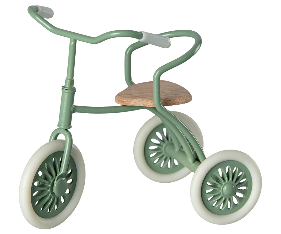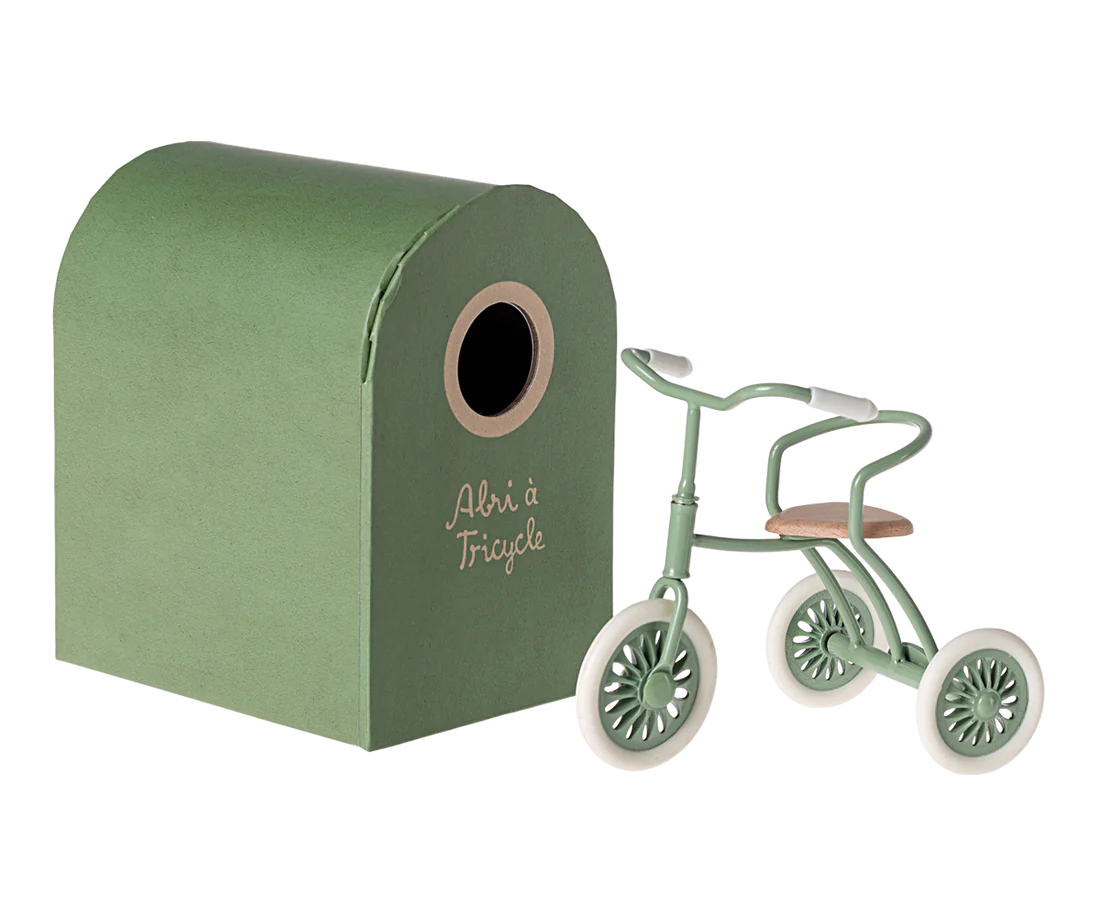 Big brother/sister mice fit this tricycle perfectly. Mice with magnets in their hands can easily hold the handles. This beautiful bike comes in a garage box to expand the play. Accessories as a basket and hanger can be purchased additionally.