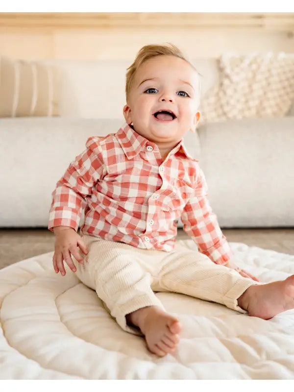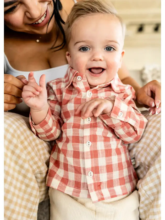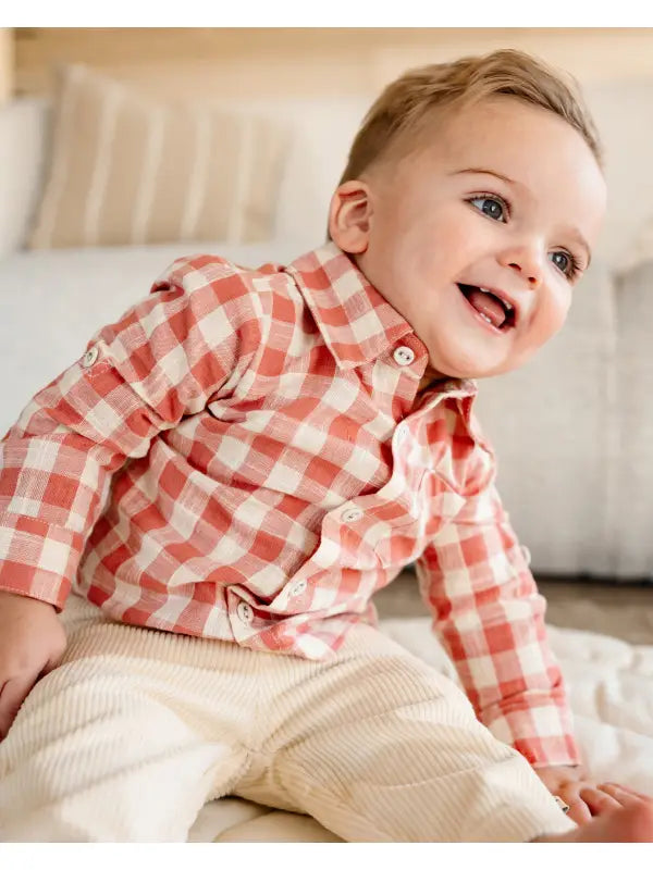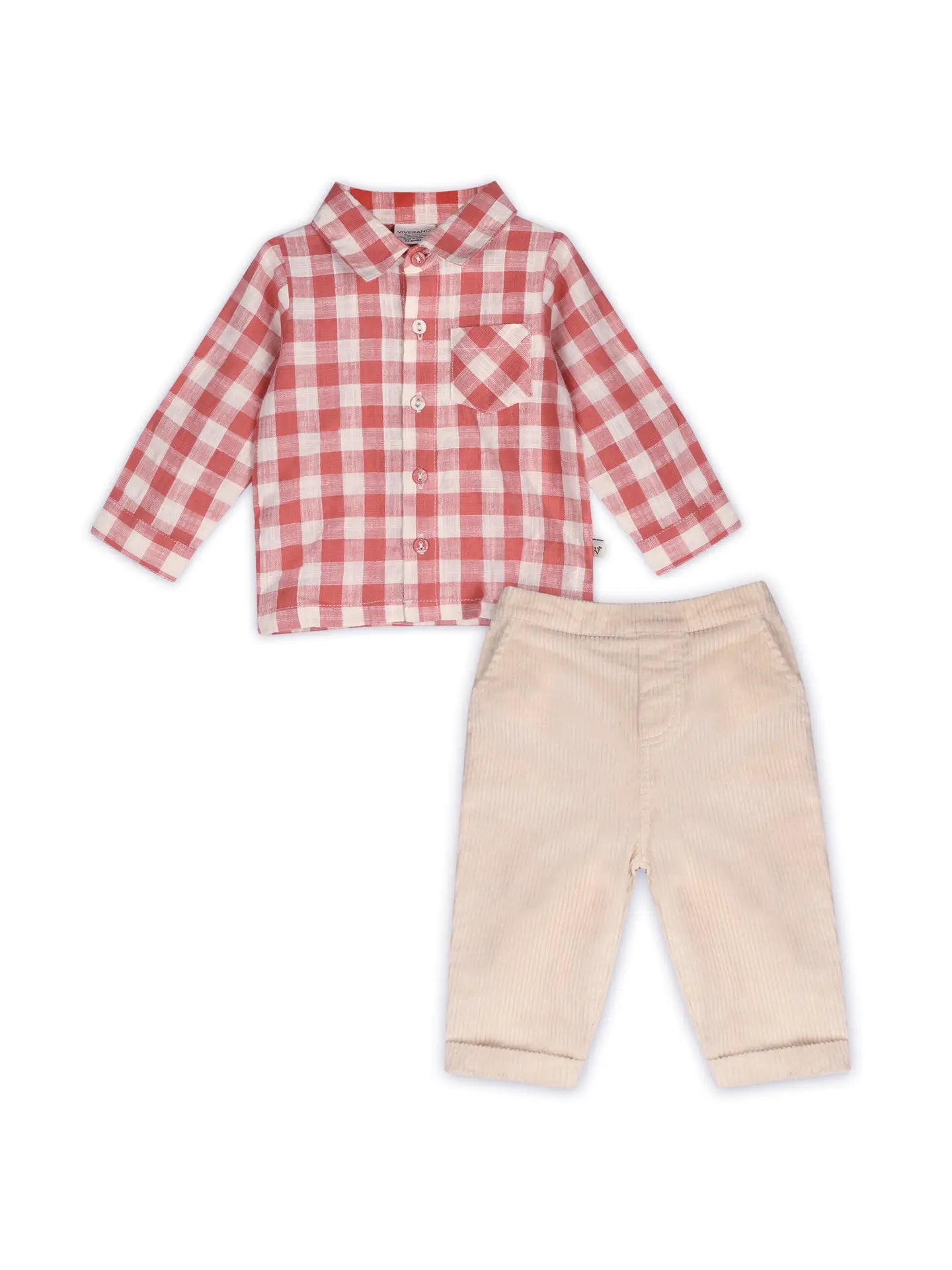 Arden Gingham Baby Shirt & Cord Pant - Cranberry Rust