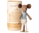 A real ballet dancer. The mouse comes in a beautiful tube with a stand inside you can use if you want to display the dancer at home.