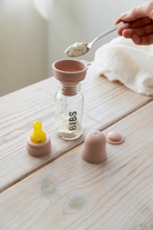 - A glass bottle specially designed and developed in the purest and premium material for your child. Glass is the absolute purest material for both food and beverages, as it is 100% chemical-free and emits no harmful substances into the milk.