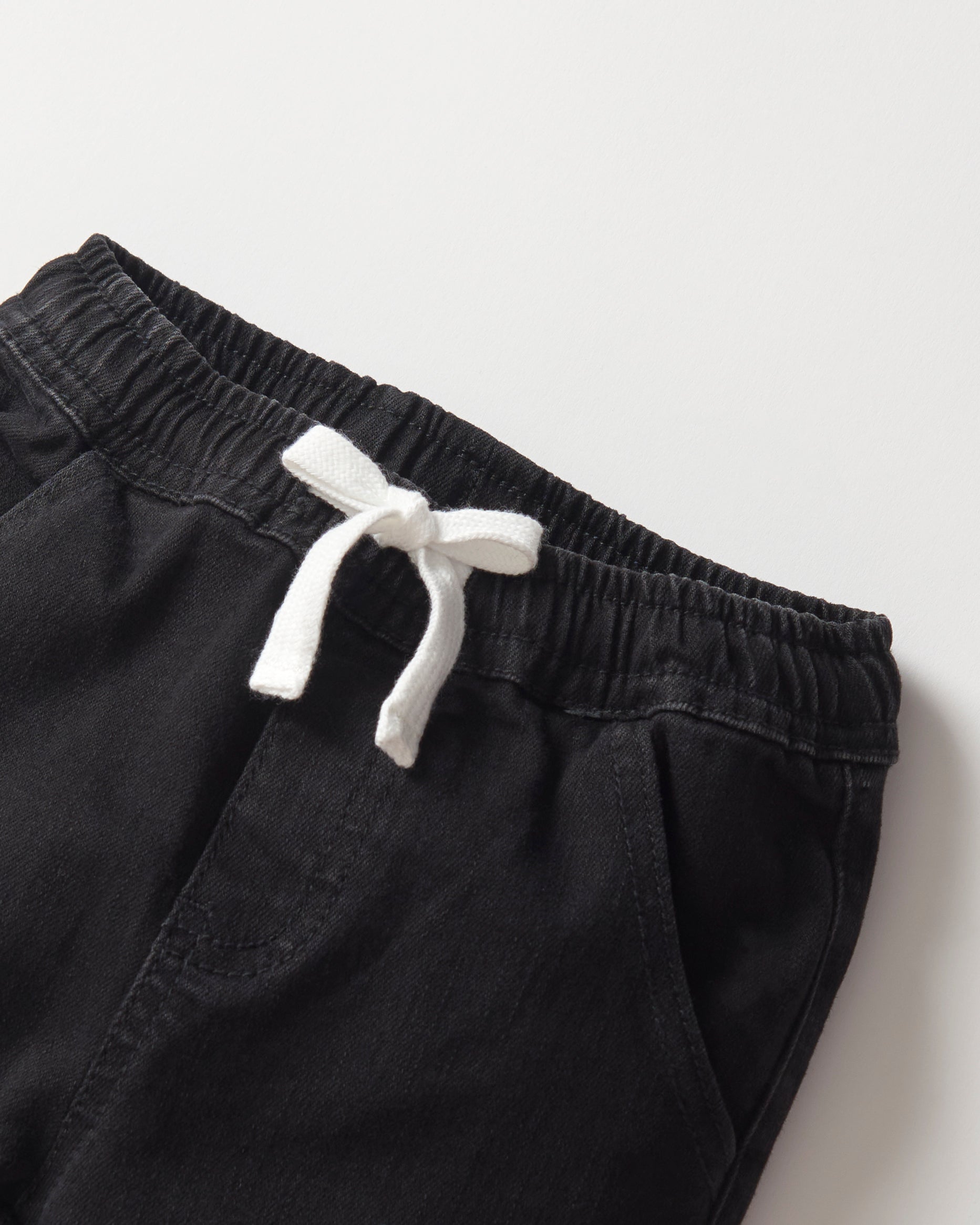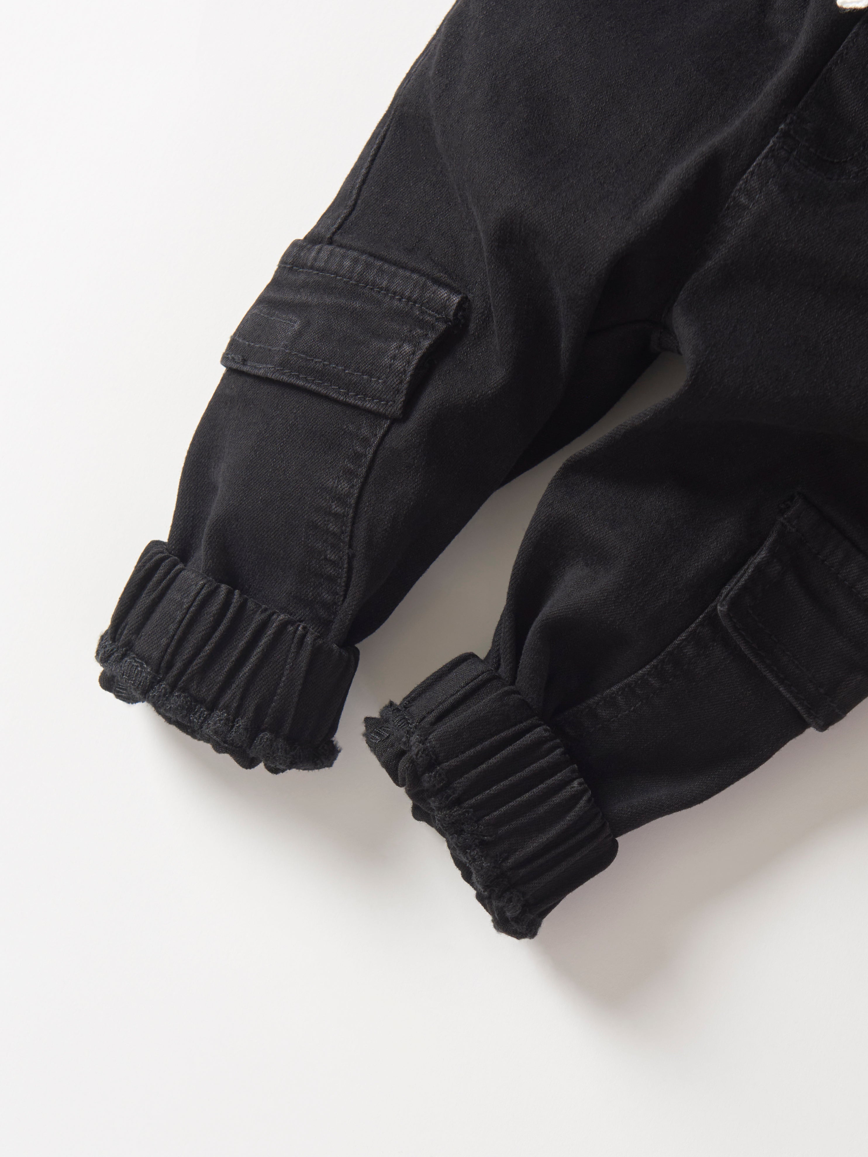 The Cargo Denim Jogger combines comfort with a touch of rugged style. Available in Black Wash and Classic Denim Wash, these joggers feature practical cargo pockets for all their little adventures. Crafted from durable denim with a soft elastic waistband, these joggers ensure both style and mobility for active days.