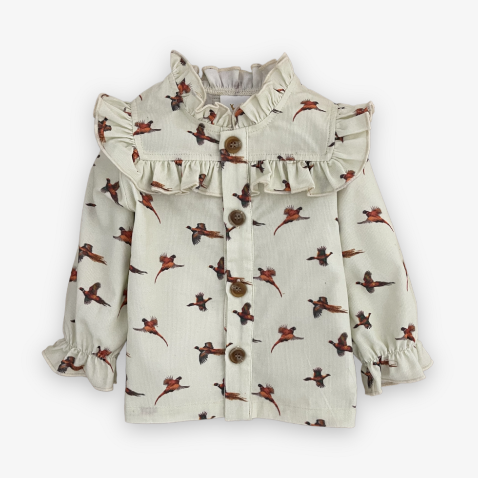 The most special top with all the details! Perfect for family photos and can be styled so many ways! Lightweight corduroy with button front and ruffle details.