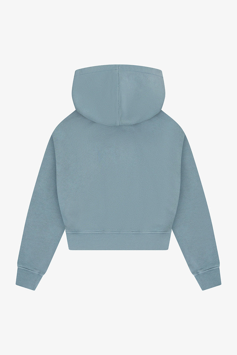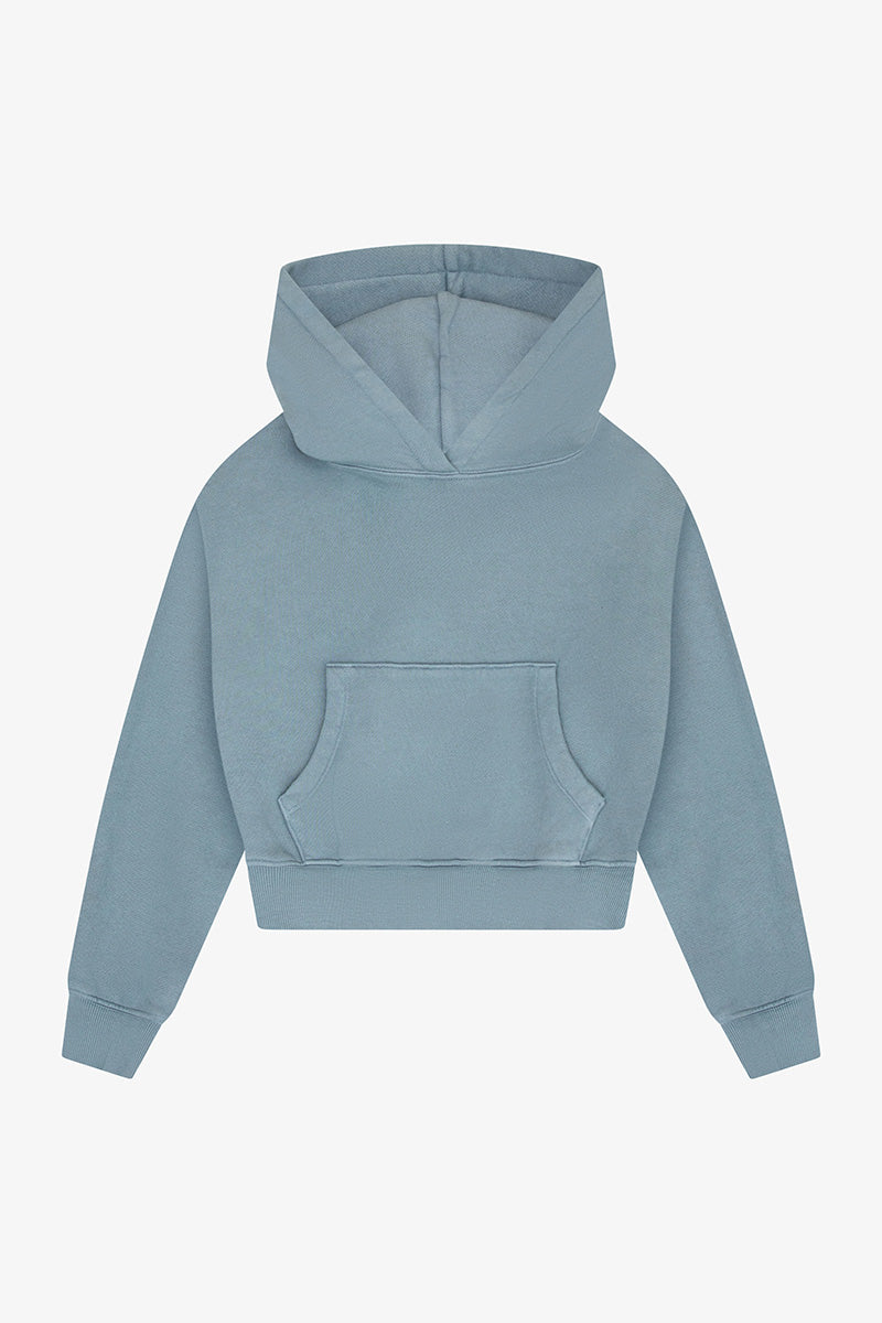 Cotton Fleece Cropped Kangaroo Pocket Hoodie - Blue Moon