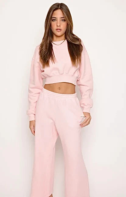 Cotton Fleece Shirred Sweatpants - Petal Bloom