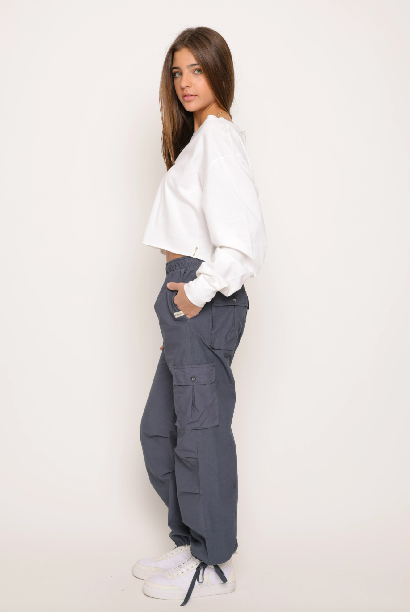 Cotton Jersey Longsleeve Cropped Top - Ecru