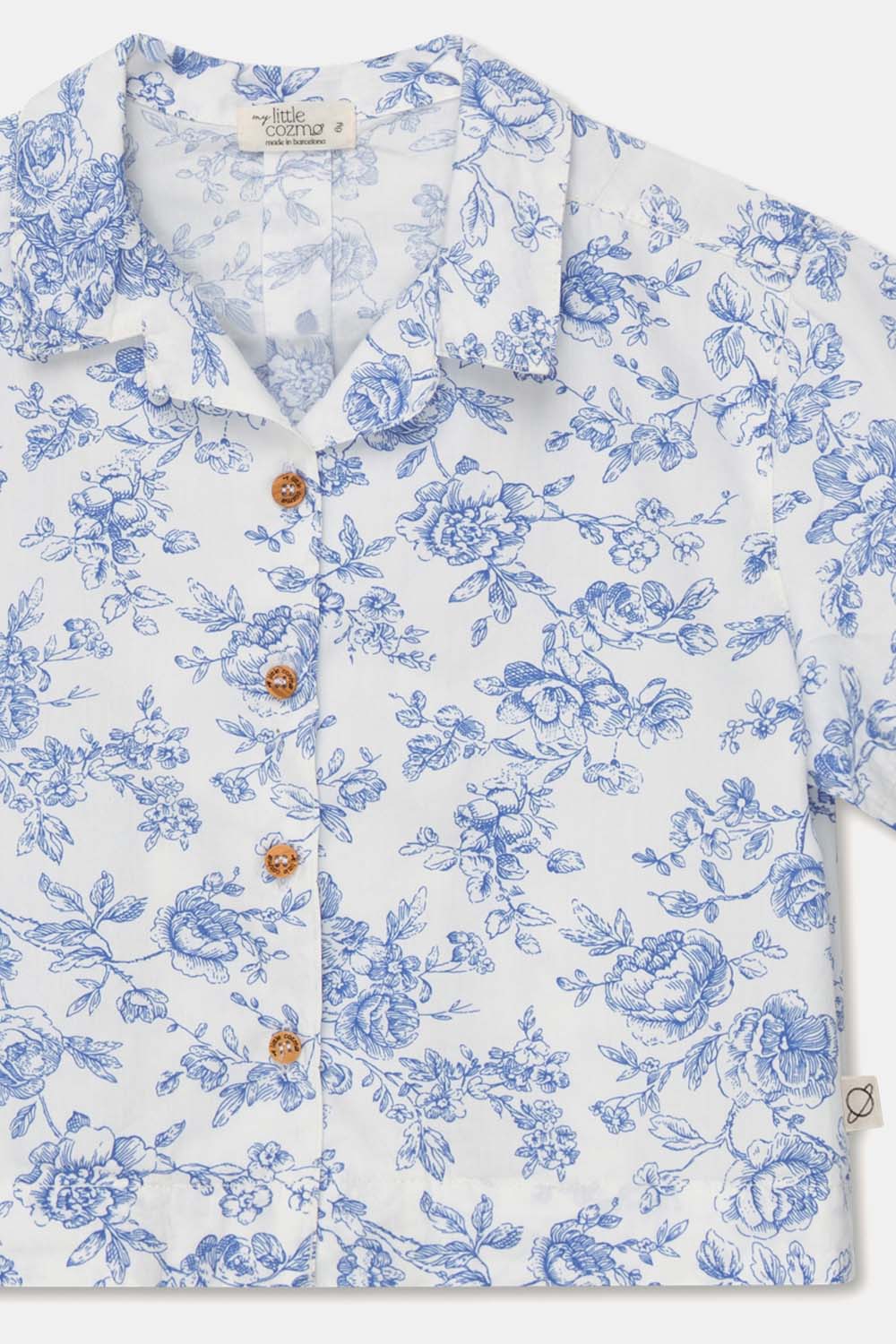 This organic floral crop shirt will uplift any outfit. Dress it up or down with its matching shorts or with a more casual bottom. Designed in a delicate all-over floral print, it features a camp collar, a button-down placket, and short sleeves. This floral crop shirt is woven in 100% GOTS-certified organic cotton