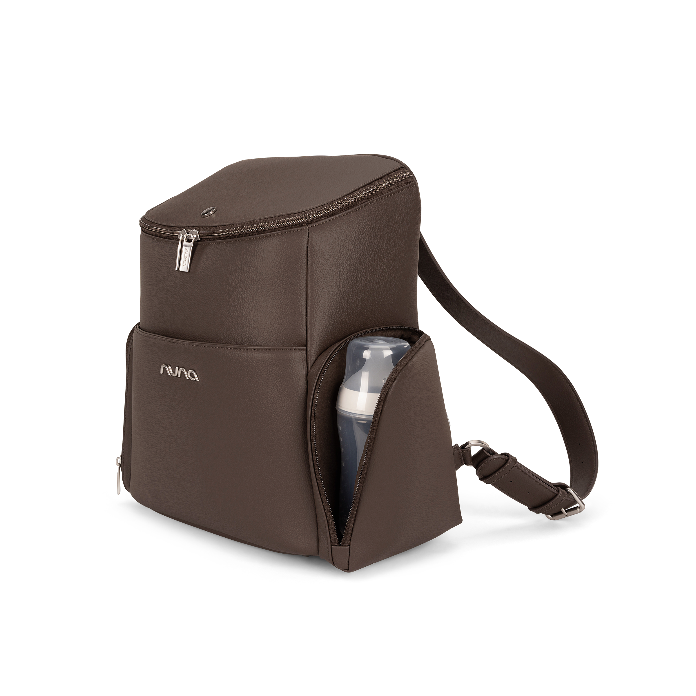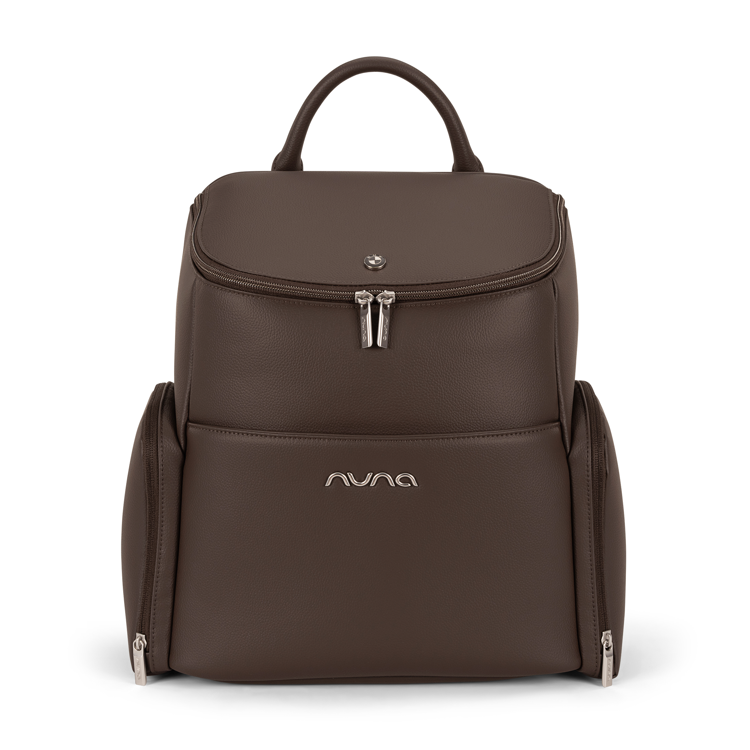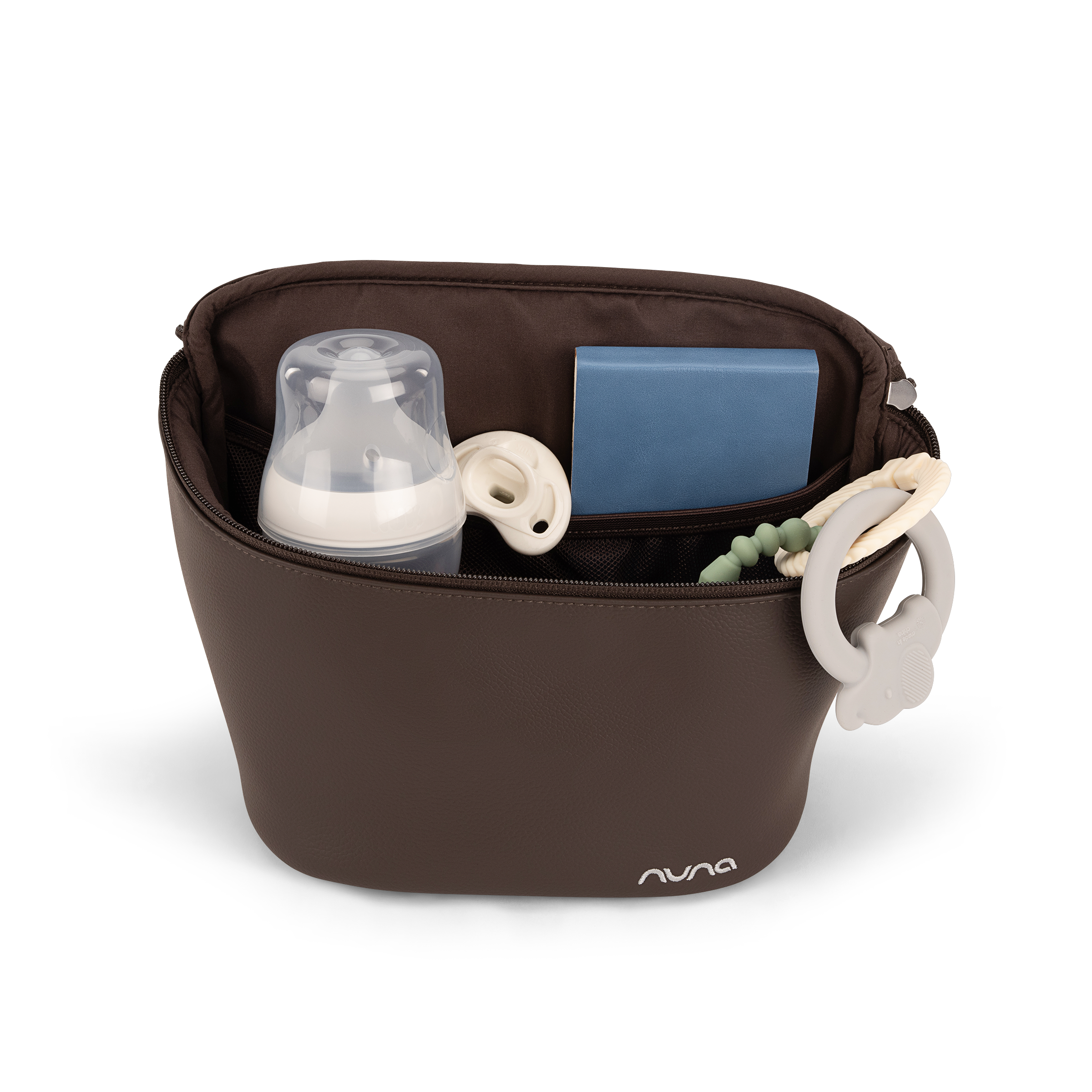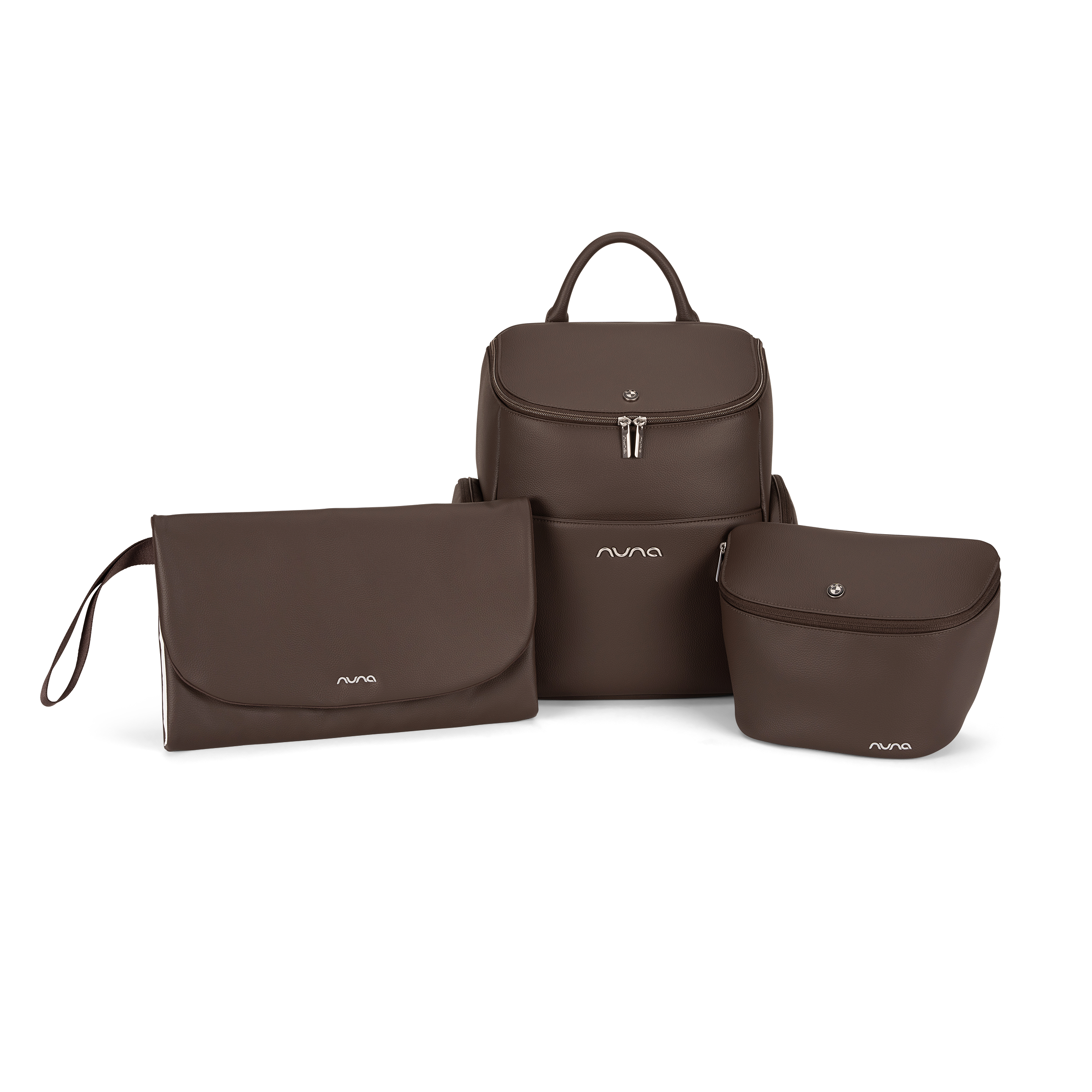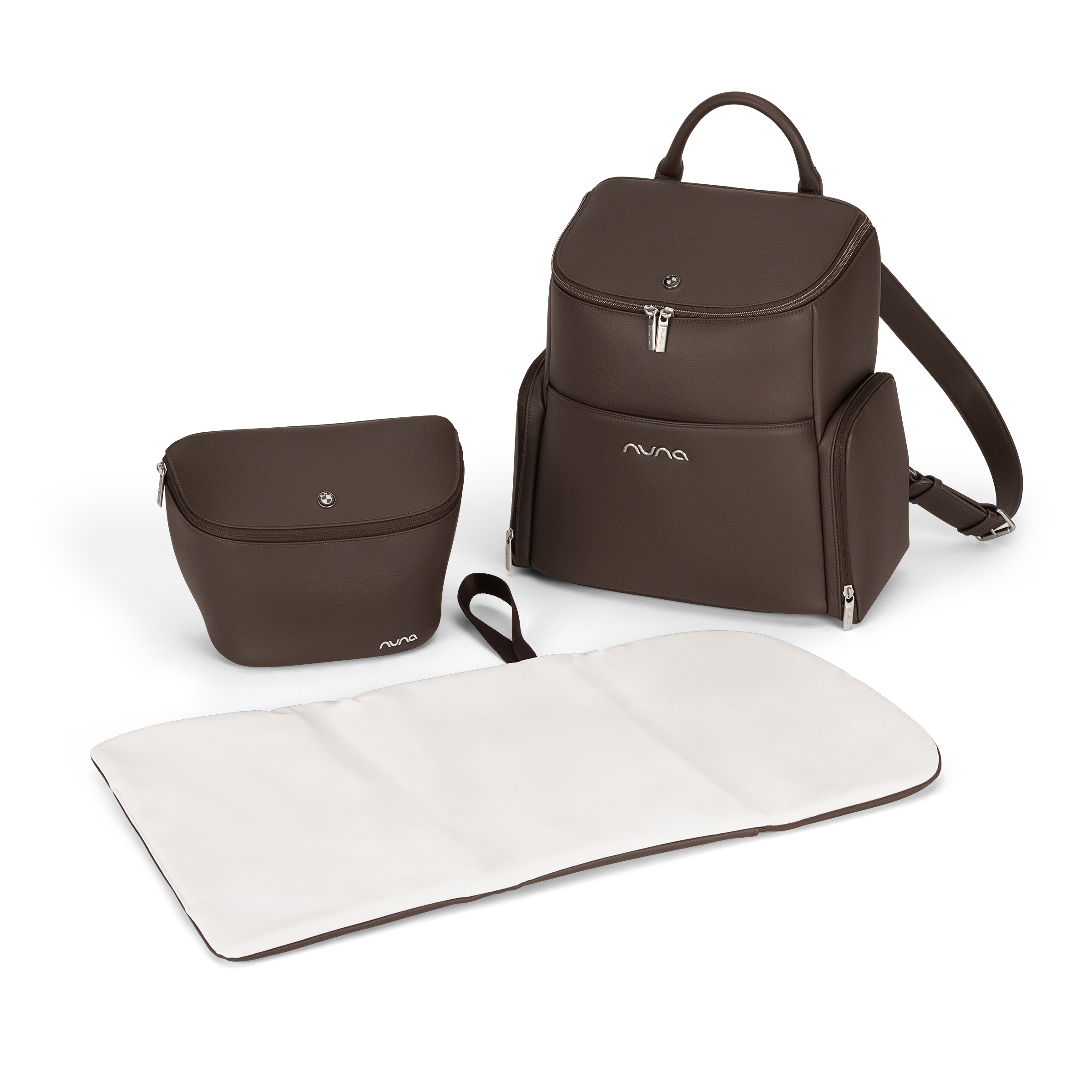 - Embroidered Nuna logo on toiletry pouch and changing pad clutch