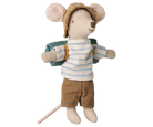 This mouse is well-prepared for a hiking trip in the wild nature. He is dressed for days of walking and brings his sleeping bag for nights under the stars. He has magnets in his hands. Add more accessories from the hiker collection for more play.