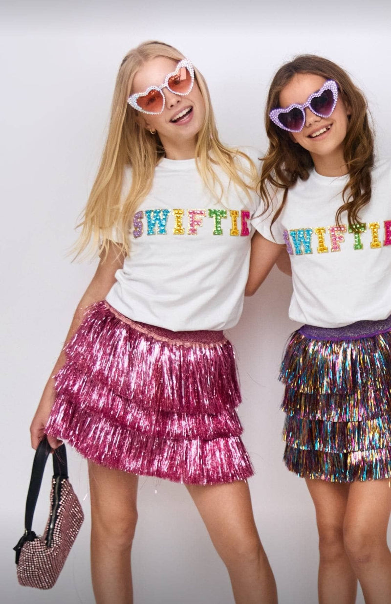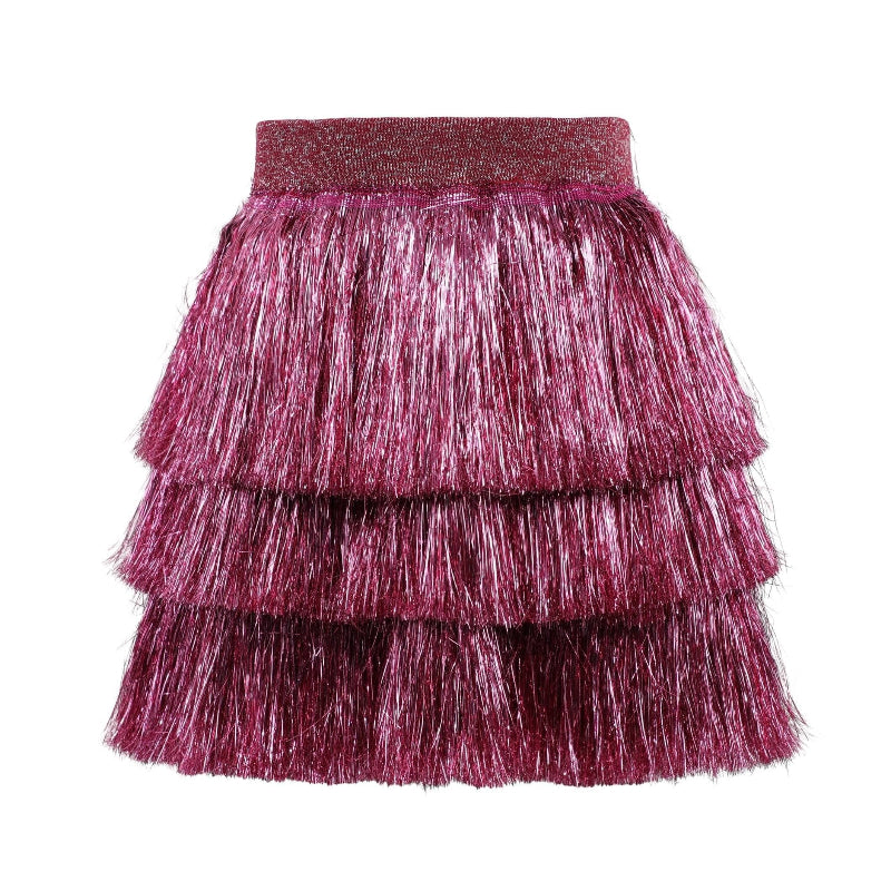 - The hot pink color and unique design make this shimmer tinsel skirt a standout piece, perfect for young fashionistas who love to shine.