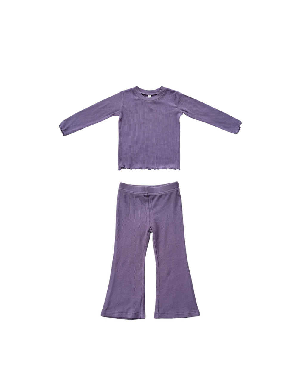 This Plum Lettuce Hem Top and Flare Pants Set combines adorable style with all-day comfort for babies and toddlers. The soft fabric and gentle stretch ensure ease of movement, while the delicate lettuce hem and flared pants add a charming, playful touch. Perfect for everyday wear or special outings, this set keeps your little one looking cute and feeling cozy.