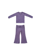 Lettuce Hem Top + Flare Pants Set - Plum