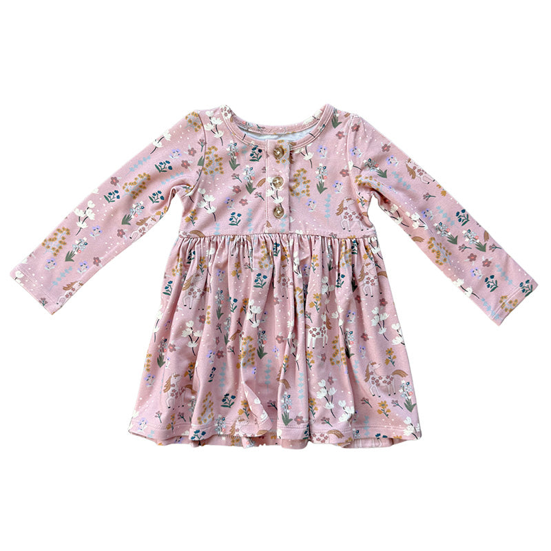 Long Sleeve Henley Dress - Unicorn