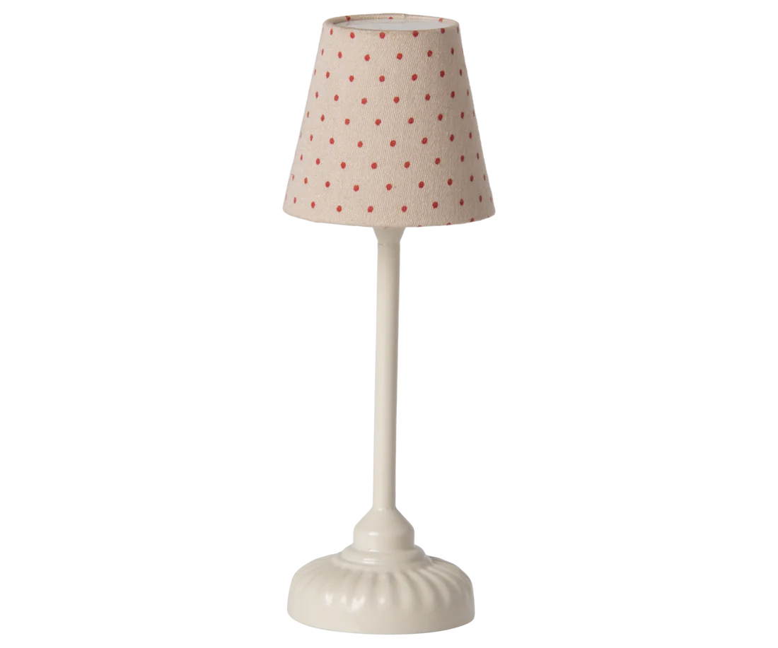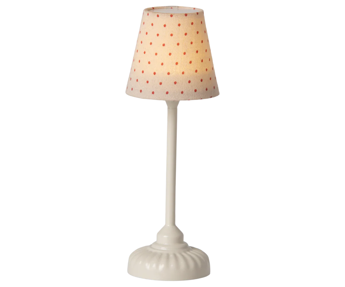 The beautiful Maileg vintage floor lamp is a must-have. The lamp will light up the room with a soft tone - remember to turn off the light when our friends go to bed. The product comes without battery.