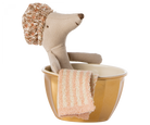 Like everyone else, this mouse loves to spend hours in the warm water in her lovely bathtub. This playset contains a golden metal bathtub, a big sister mouse, a showercap and a towel.