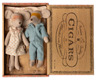 Mum & Dad Mice in Cigar Box - Polka Dot Dress and Striped Pajamas