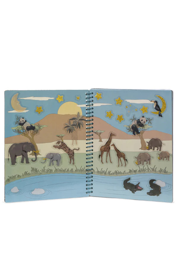 Fun sticker book with reusable stickers. Includes 8 different board pages with different worlds and universes. Create your own with the different stickers.