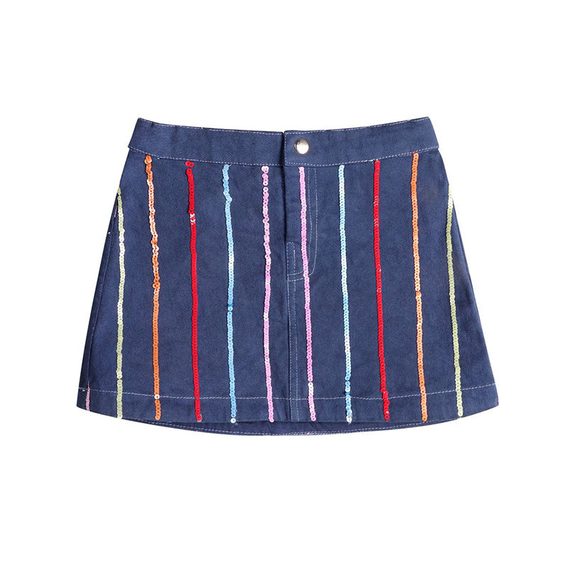 Add a splash of fun to everyday style with this vibrant striped denim skort, perfect for playful and trendy looks.
