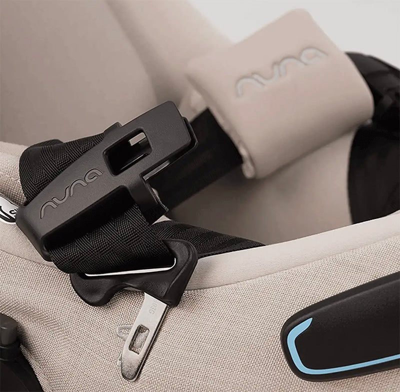 - Integrated magnetic buckle holders keep straps out of the way when buckling baby in