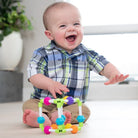 Each edge is connected by elastic bands to allow little hands to bend it and twist it this way and that. Meanwhile, the rubbery textured beads spin and slide for an extra boost of sensory fascination.