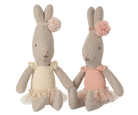 The well known Maileg micro bunny dressed up as a ballet dancer. It wears a suit and tulle skirt and has a small decoration around the pointing ears.