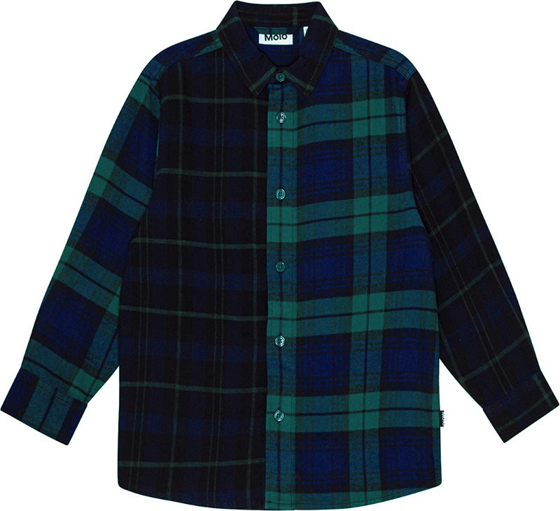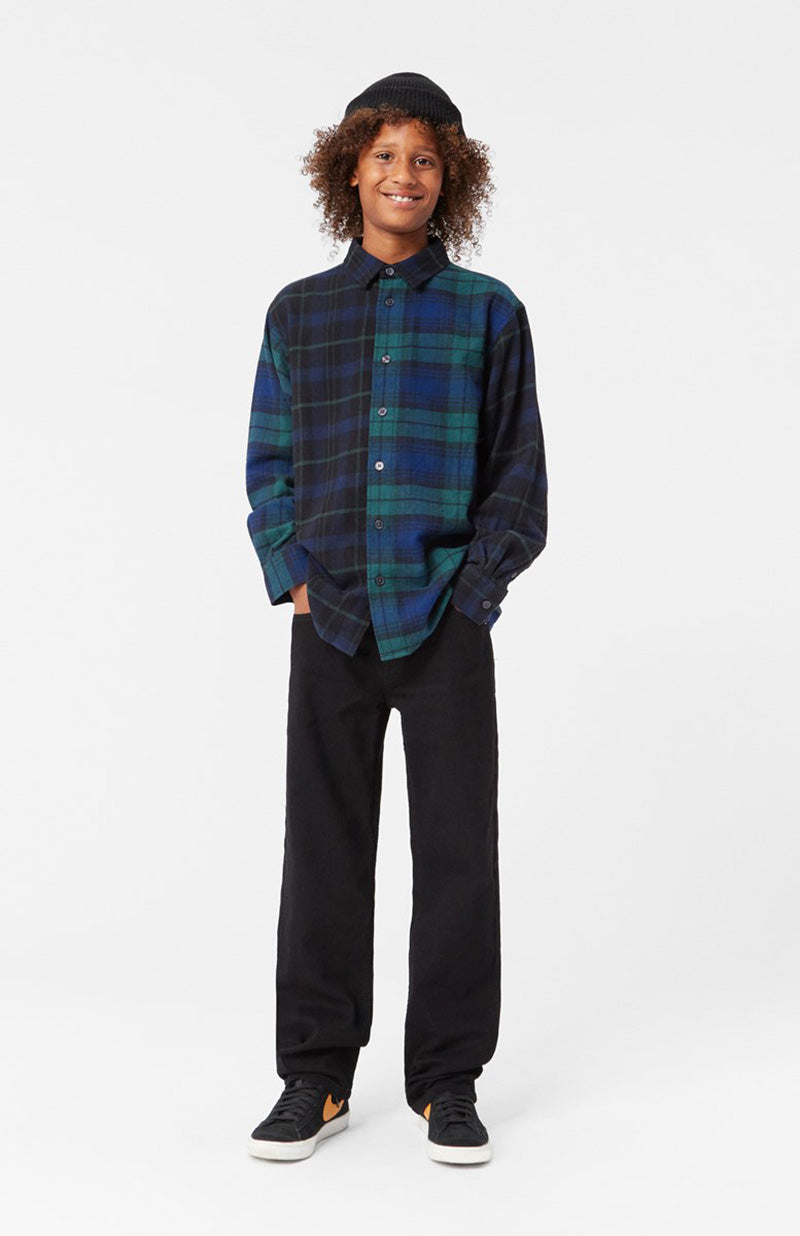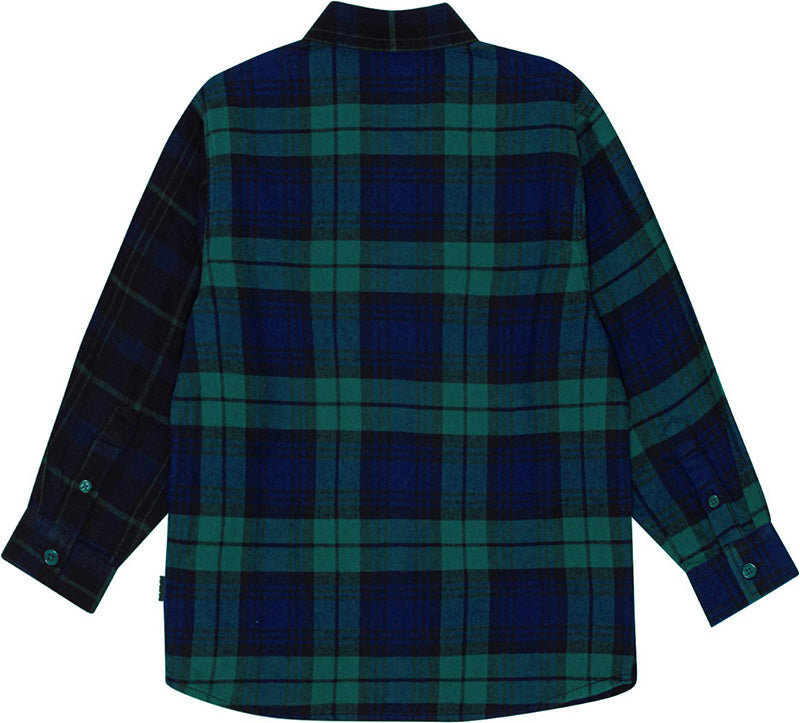 Green, black, and blue plaid shirt in organic cotton with a button closure on the front, a button-down collar, long sleeves with cuffs, sewn-on chest pockets, and a regular fit. Wear the shirt buttoned up or as an overshirt over a T-shirt.