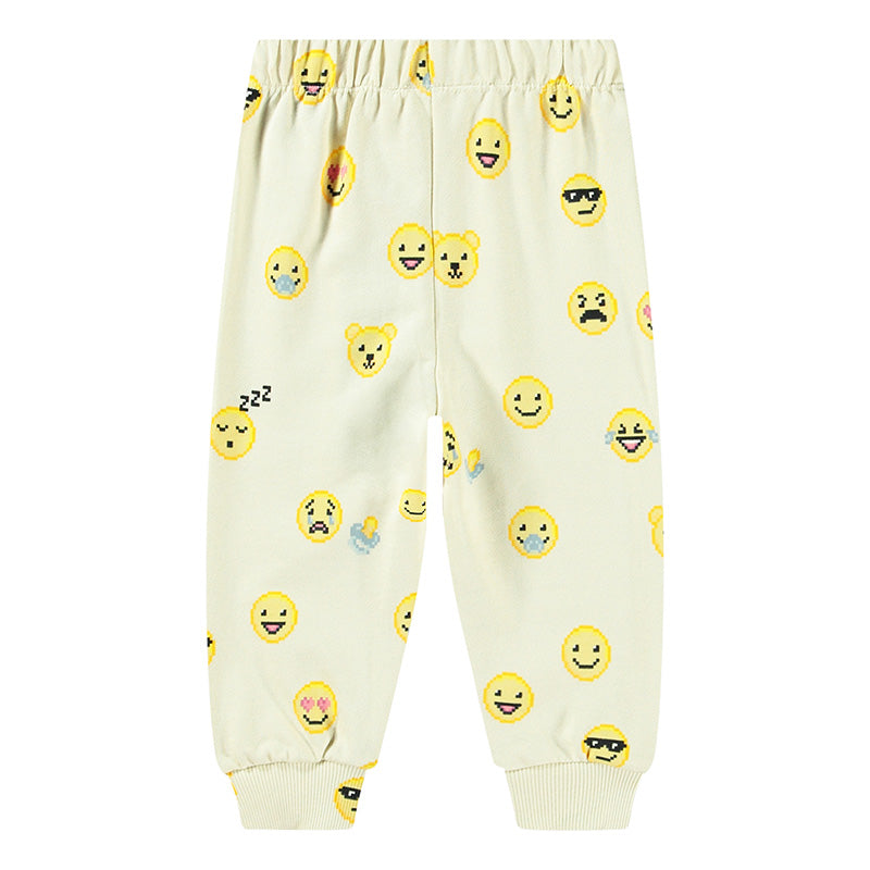 Cream sweatpants in organic cotton for the little ones. The trousers have an elastic waistband and drawstring, as well as ribbed cuffs at the legs. They are easy to put on and take off and provide plenty of freedom of movement. The trousers feature an all-over print of fun and unique emojis.