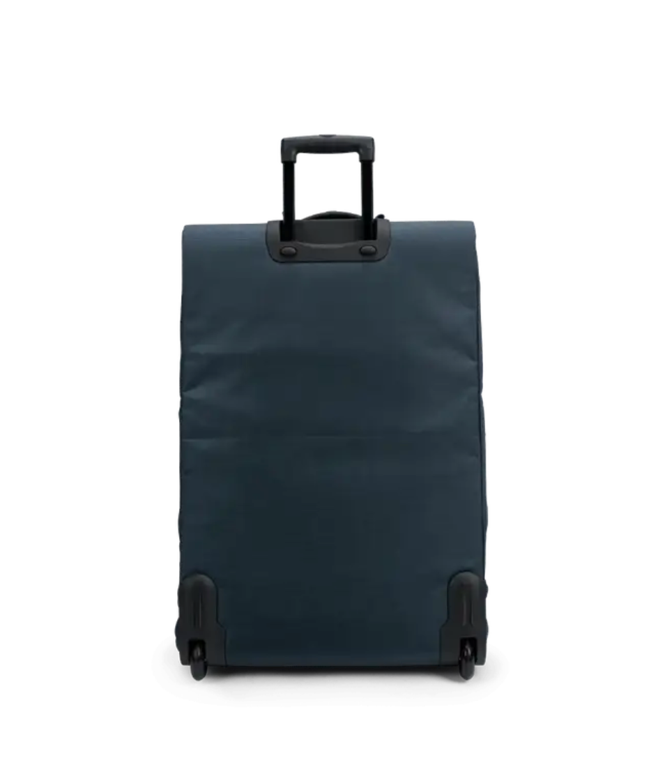 - Telescoping luggage handle provides easy trolly