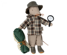 This wildlife guide mouse is ready for a hiking trip. The guide is dressed for walking and brings a sleeping bag and a magnifying glass to explore nature. This style is dad/mum size and has magnets in the hands.